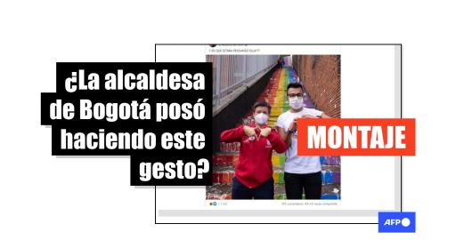 Imagen Publicado el 28/07/2021 La foto de Claudia López haciendo un gesto frente a los colores del arcoíris es un montaje