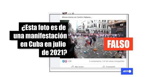 Imagen Publicado el 14/07/2021 La foto de desórdenes en una calle muestra hinchas de fútbol en Londres, no protestas en Cuba