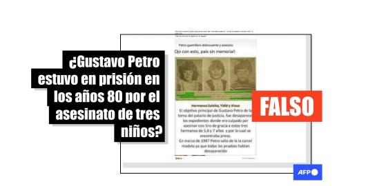 Imagen Publicado el 16/07/2021 El opositor colombiano Gustavo Petro no fue encarcelado en 1985 por el asesinato de tres niños
