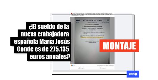 Imagen Publicado el 15/11/2021 El BOE español con el nombramiento de María Jesús Conde como embajadora no menciona su salario
