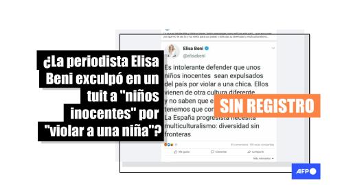 Imagen Publicado el 14/09/2021 No se halló tuit de la periodista Elisa Beni exculpando a extranjeros por “violar a una niña”