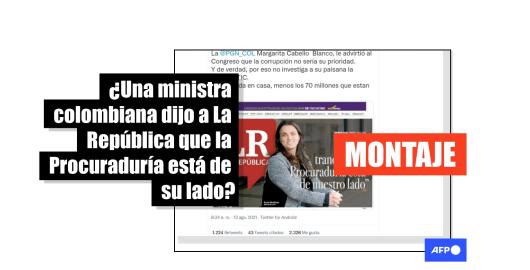 Imagen Publicado el 20/08/2021 La portada sobre el apoyo de la Procuraduría a la ministra colombiana Abudinen es un montaje