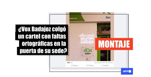 Imagen Publicado el 17/06/2021 La imagen de la sede de Vox Badajoz con un cartel con errores ortográficos es un montaje