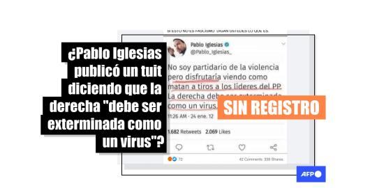 Imagen Publicado el 28/04/2021 No hay registro de que Pablo Iglesias tuitease sobre ver cómo “matan a tiros a los líderes del PP”