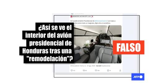Imagen Publicado el 09/09/2025 Una foto de un jet privado se difunde como si fuera del interior del avión presidencial de Honduras