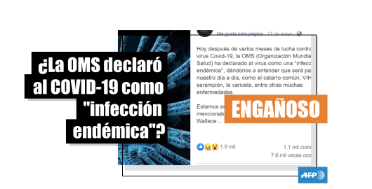 Imagen Publicado el 27/05/2020 La OMS dijo que el virus “puede volverse” endémico, pero no lo catalogó como tal