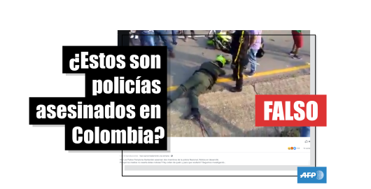 Imagen Publicado el 11/03/2020 Los policías colombianos tendidos en el suelo tuvieron un accidente de tránsito, no fueron asesinados