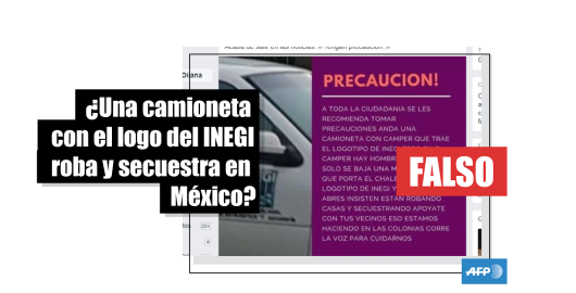 Imagen Publicado el 02/03/2020 El instituto mexicano de estadística desmintió que haya una camioneta con su logo cometiendo robos y secuestros