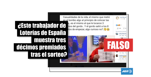 Imagen Publicado el 23/12/2019 La imagen del trabajador de Loterías de España con décimos premiados está manipulada