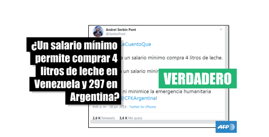 Imagen Publicado el 01/08/2019 Sí, un salario mínimo permite comprar 4 litros de leche en Venezuela y 297 en Argentina