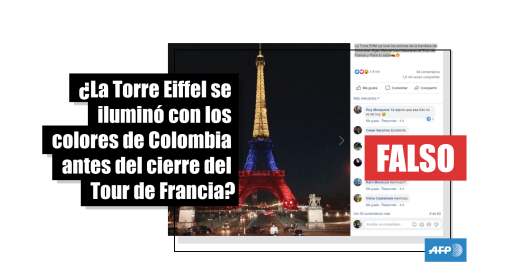 Imagen Publicado el 01/08/2019 No, la Torre Eiffel no fue iluminada con los colores de Colombia en homenaje a Egan Bernal