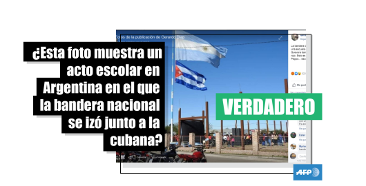 Imagen Publicado el 28/06/2019 Sí, la foto muestra un acto en una escuela argentina en el que se izó la bandera nacional junto a la de Cuba