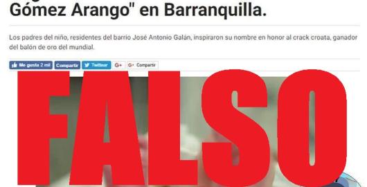 Imagen Publicado el 18/07/2018 ¿Se registró un niño con el nombre de Lucas Modric Gómez Arango en Barranquilla? La noticia adjudicada al portal Colombia.com es falsa