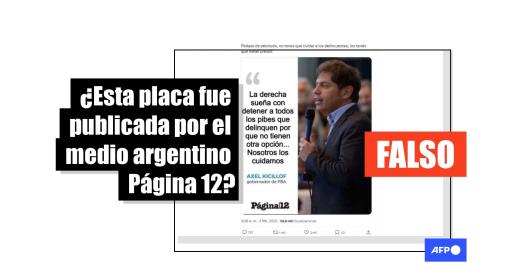 Imagen Publicado el 12/02/2025 Página 12 no publicó una placa con supuesta frase del argentino Kicillof sobre “pibes que delinquen”