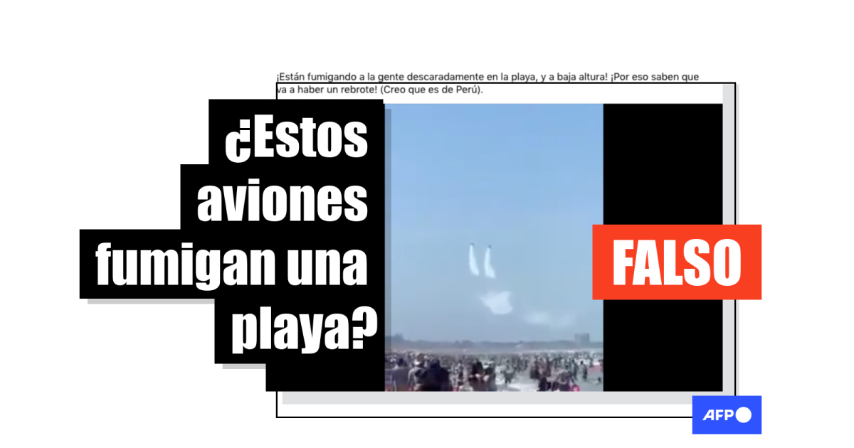 “Fumigando Las Playas De México”, dice una publicación compartida en Facebook en abril de 2019 junto con el video de dos aviones volando sobre una playa abarrotada, que también fue enviado al WhatsApp de AFP Factual para su análisis.