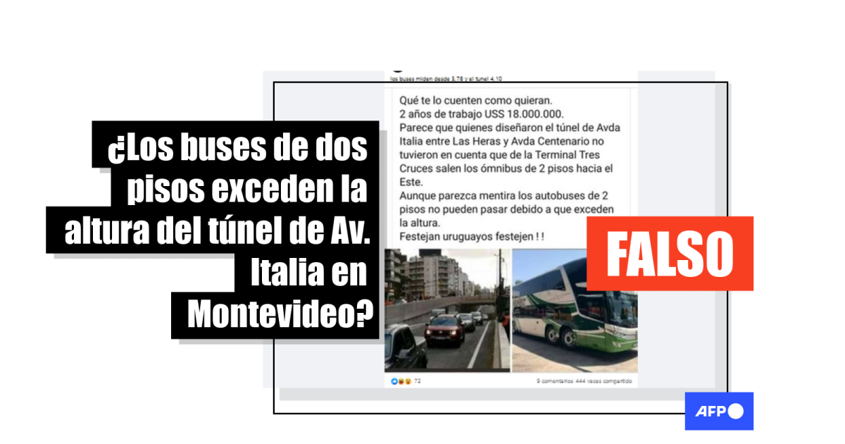 “Parece que quienes diseñaron el túnel de Avda Italia entre Las Heras y Avda Centenario no tuvieron en cuenta que de la Terminal Tres Cruces salen los ómnibus de 2 pisos hacia el Este”, se lee en una publicación en Facebook (1, 2, 3) compartida más de 6.000 veces. “Aunque parezca mentira los autobuses de 2 pisos no pueden pasar debido a que exceden la altura. Festejen uruguayos festejen!!”