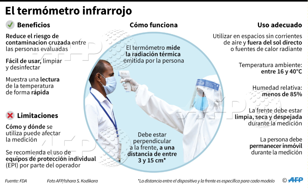“El sensor [del termómetro] lo que hace es solamente medir radiación electromagnética [emitida por el usuario], no produce”, explicó a AFP Factual Antonio Estay, académico de la Universidad de Chile en el Departamento de Tecnología Médica, tras ser consultado por otra desinformación viral que aseguraba que estos dispositivos provocaban daños oftalmológicos.