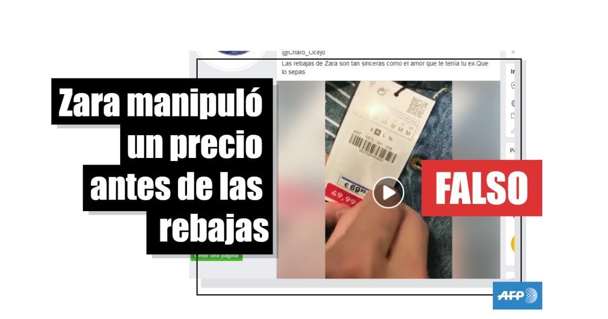 “Las rebajas de Zara son tan sinceras como el amor que te tenía tu ex. Que lo sepas”, dice una de las publicaciones virales. En las imágenes, dos personas que hablan en francés toman la etiqueta de una prenda y van quitando los precios que aparecen sobre ella. El primero, con los números sobre fondo rojo, es de 49,99 euros. Encima de esta etiqueta hay otra, con una línea azul sobre el precio (69,95 euros). El último precio, ya impreso en la etiqueta, es de 39,95 euros, con una línea roja sobre él.