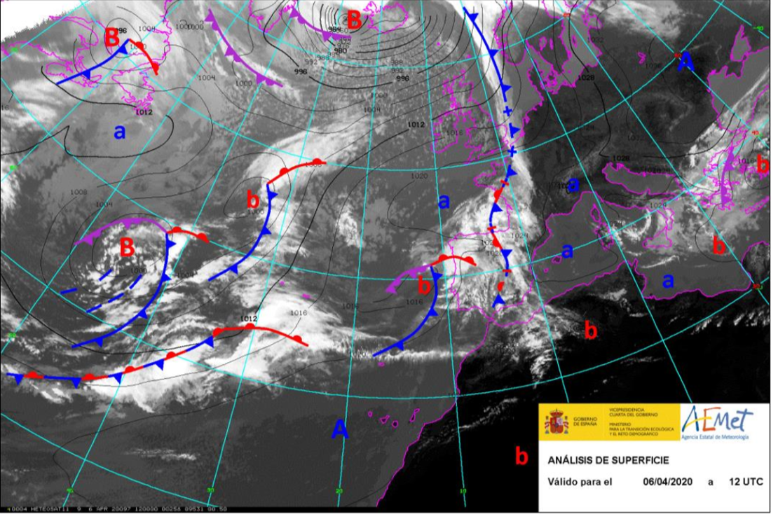 También enviaron, vía correo electrónico, un registro de lo sucedido en Grecia en la primera semana de abril. “Lunes, 6 de abril de 2020 a las 00 UTC, una baja relativa, con centro sobre el mar Egeo, se extiende sobre la península del Peloponeso. El flujo de aire muy frío [...] superiores a los 50 km/h”, concluyó el análisis de la AEmet.