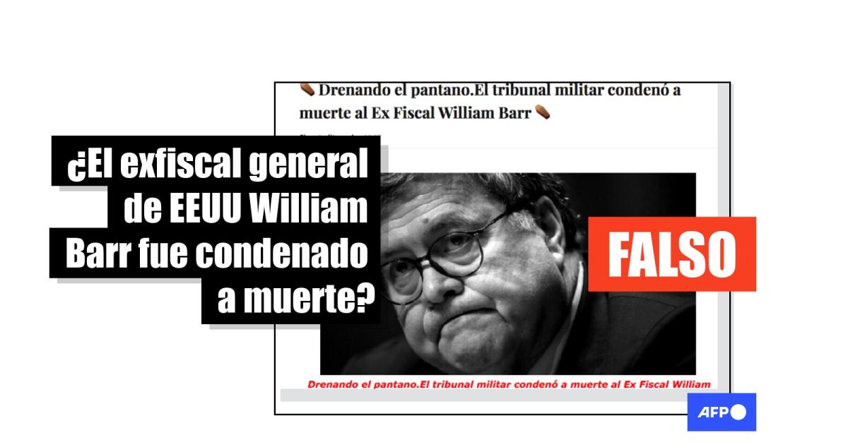 Las entradas difundidas en redes comienzan con la frase: “Convictos militares William Barr Por Michael Baxter”. Una búsqueda en Google con las palabras clave “Michael Baxter William Barr” llevó a Real Raw News, un portal cuyas publicaciones han sido verificadas previamente por la AFP (1, 2).