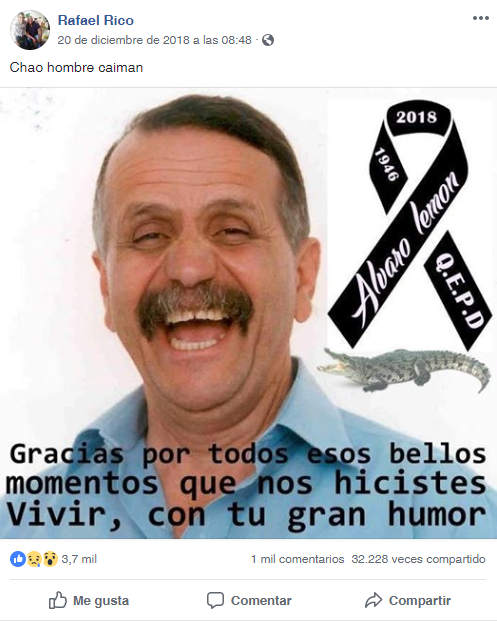 En resumen, es falso que el humorista colombiano Álvaro Lemmon haya muerto en diciembre pasado.