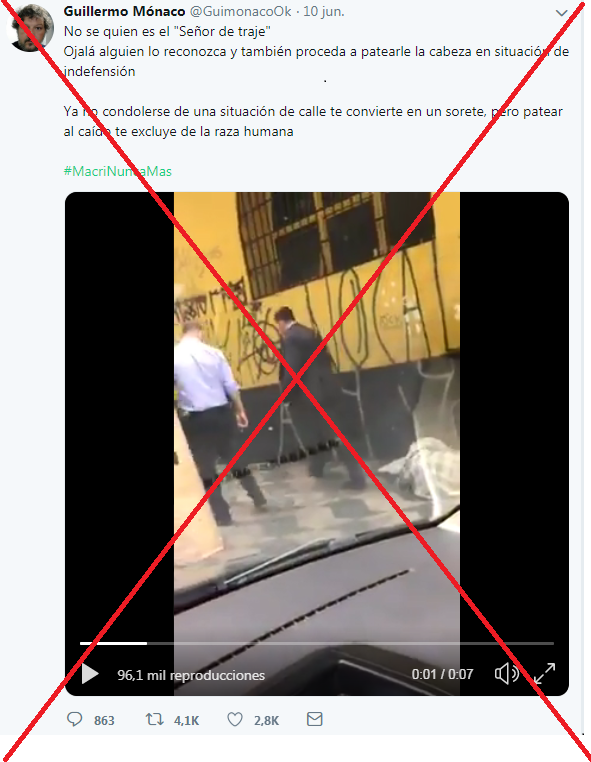 No, el video de un hombre que patea a un indigente no fue filmado en Argentina sino en Brasil
