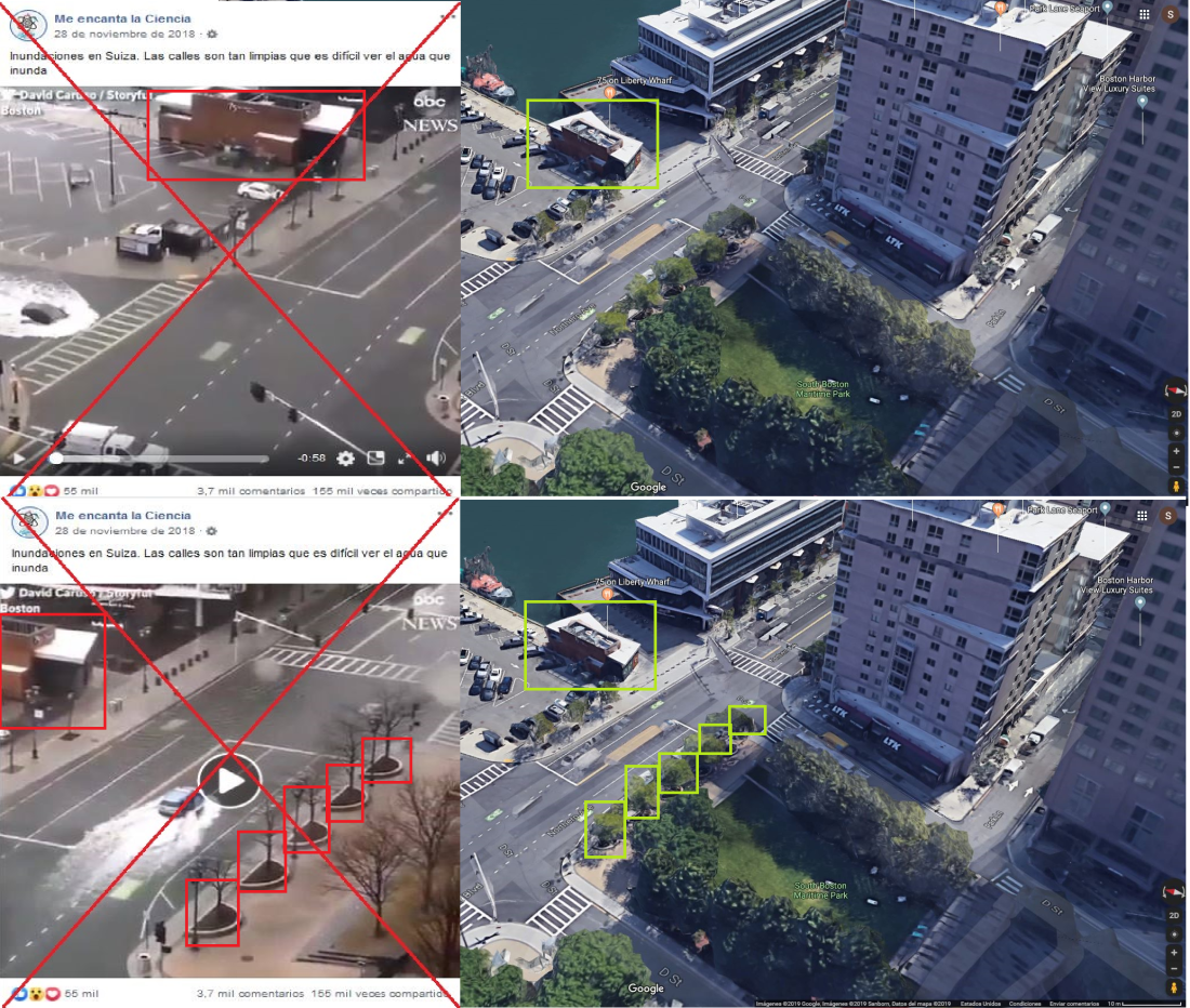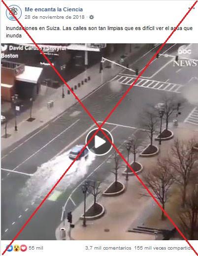 Pero, como indica un pequeño texto incrustado en la parte superior izquierda de la imagen, la filmación fue tomada en Boston, noreste de Estados Unidos. Las imágenes también han sido publicadas en Twitter, YouTube y por otra página de Facebook en la que también se hizo viral, como supuesta inundación en Suiza. Además, la secuencia circula en inglés y portugués.