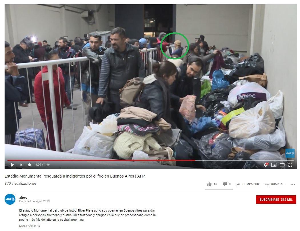 En este video de la AFP también puede verse a García Olano en el ingreso al estadio, junto a las donaciones de abrigos y frazadas.