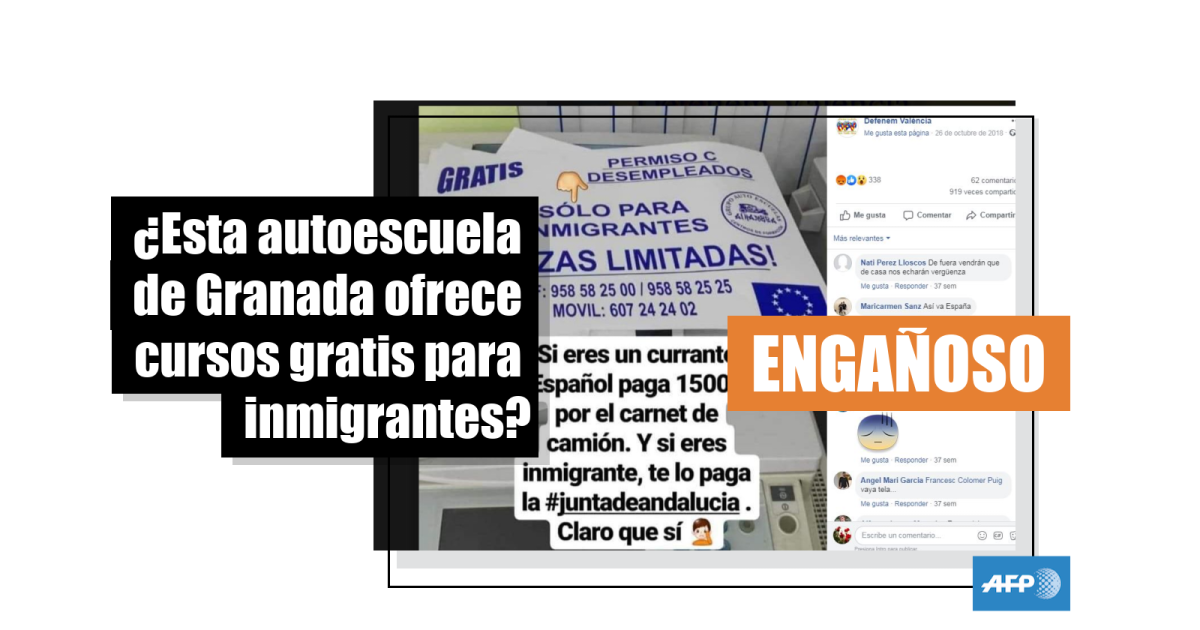 Pese a reiteradas llamadas de AFP Factual a la autoescuela para una consulta adicional, no fue posible aclarar si los cursos fueron gratis solo para inmigrantes desempleados o si el anuncio fue manipulado para añadir la frase “solo para inmigrantes”. La entrada del propio centro en Facebook, no obstante, aclaraba: “no se discrimina a ninguna persona por ninguna razón de origen”.