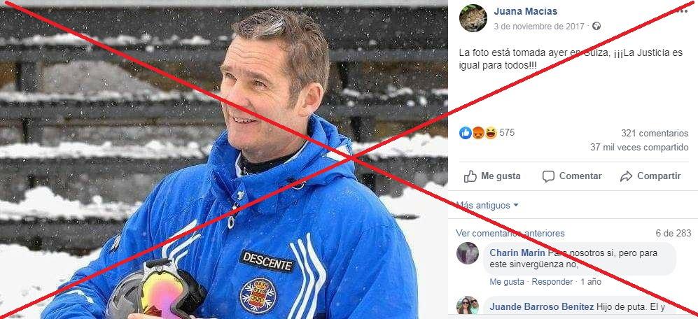 Por tanto, la imagen de Iñaki Urdangarin no había sido tomada “ayer en Suiza” en 2017, ni en 2018, ya que data de 2009, durante una estancia en Baqueira-Beret, en el noreste de España.