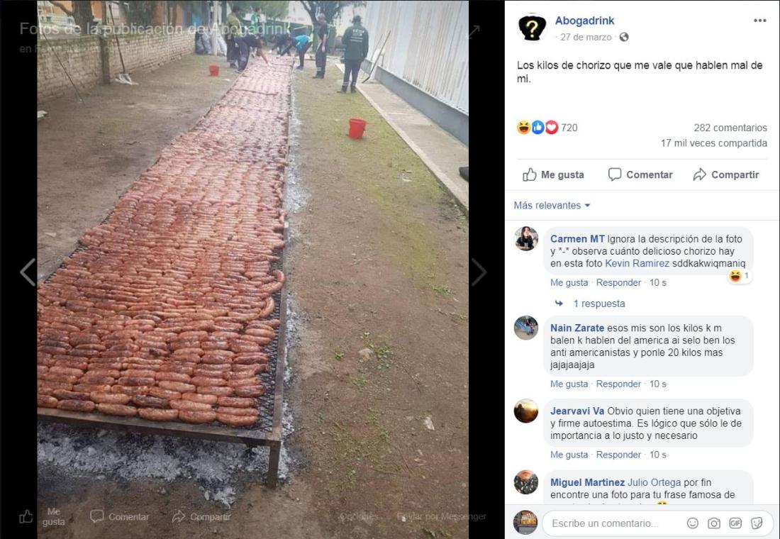 No, esta foto de una parrilla llena de chorizos circula al menos desde marzo de 2019