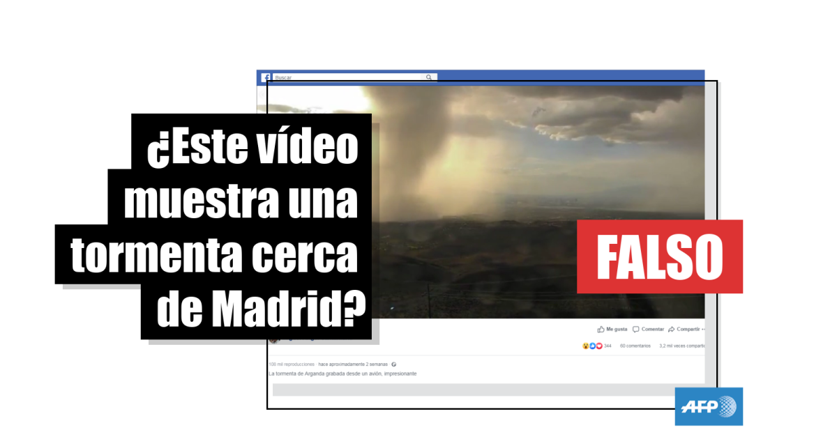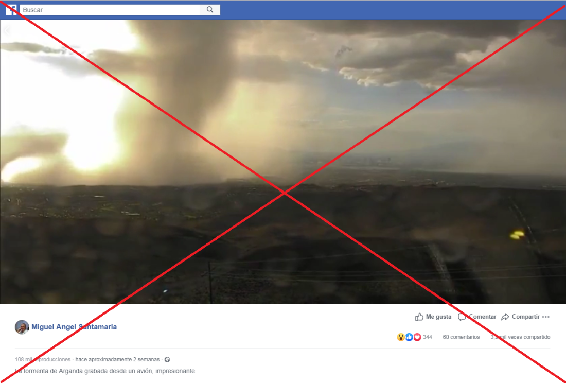 Bajo el título “La tormenta de Arganda grabada desde un avión, impresionante”, circula un vídeo en Facebook que ha sido compartido, al menos, 4.000 veces en varias publicaciones.