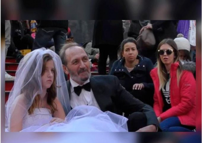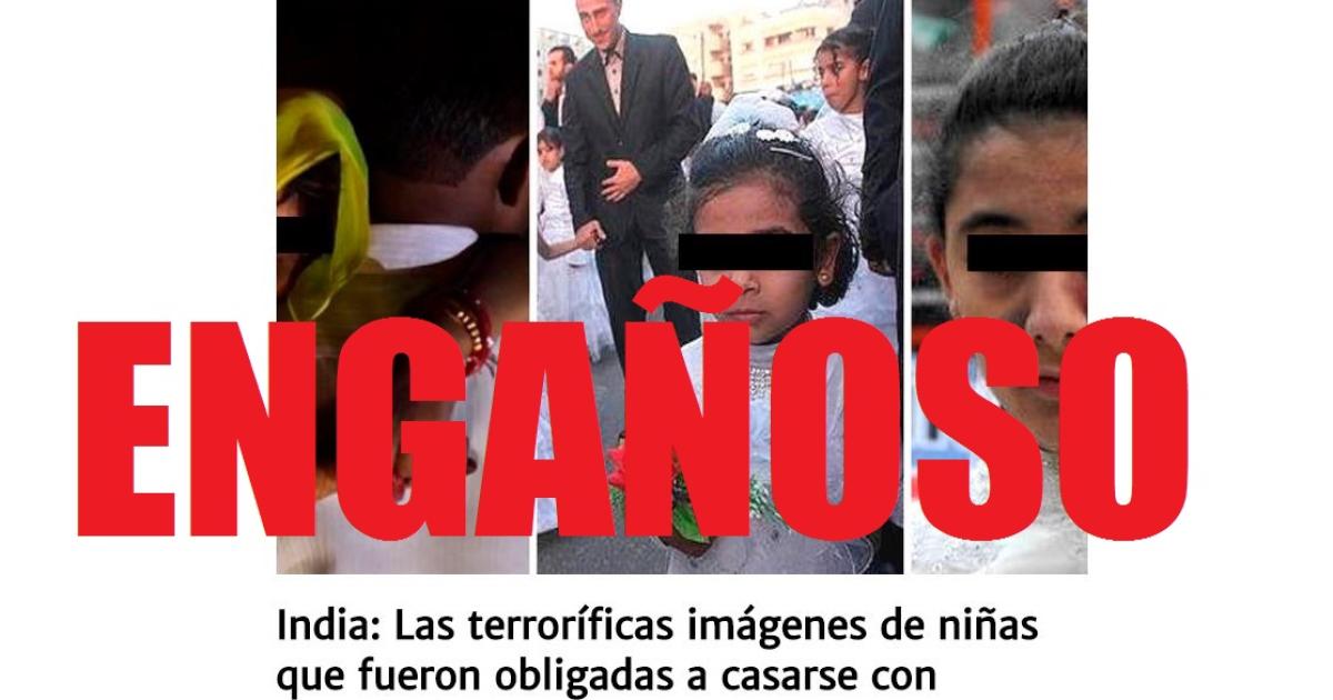 La imagen de este adulto junto a una joven vestida de novia fue usada, por ejemplo, en una publicación sobre niñas obligadas a casarse con mayores de edad. En verdad, fue tomada durante un “experimento social” contra el matrimonio infantil, realizado en Times Square, en Nueva York en 2016, por el youtuber estadounidense Coby Persin.