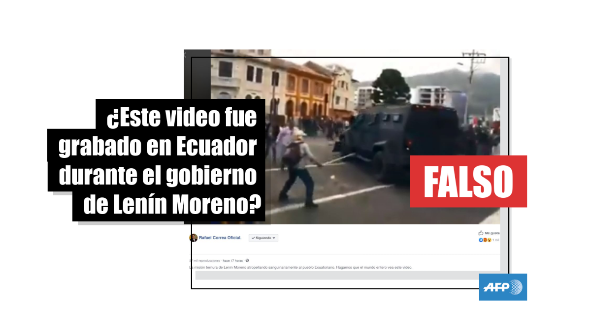 “Hagamos que el mundo entero vea este video”, arenga el autor de la publicación, que supuestamente muestra “la misión ternura del presidente Lenín Moreno atropellando sanguinariamente al pueblo Ecuatoriano”.
