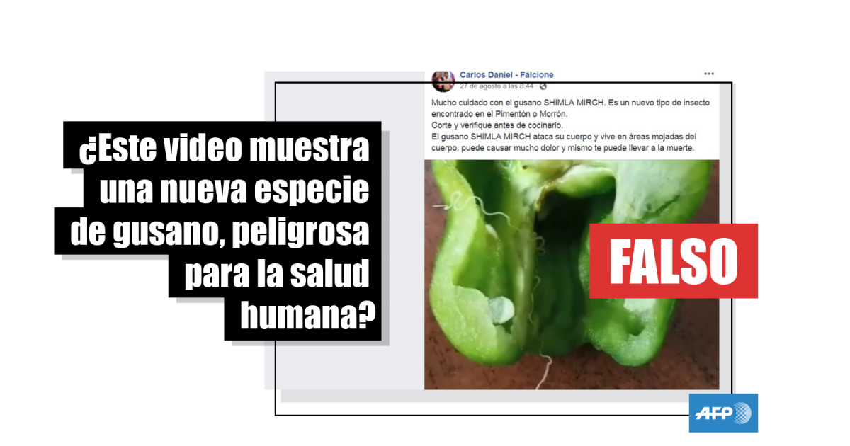 “Mucho cuidado con SIMLA MIRCH es un nuevo tipo de insecto encontrado en el Pimentón o Morrón. Corte y verifique antes de cocinarlo. El SIMPLA MIRCH [sic] ataca su cuerpo y vive en áreas mojadas del cuerpo, puede causar mucho dolor y mismo te puede llevar a la muerte”, advierte una de las publicaciones en Facebook. “Gracias, tomaré mis precauciones”, comenta una usuaria. “Para estar más alerta en el consumo del pimentón”, escribe otro.
