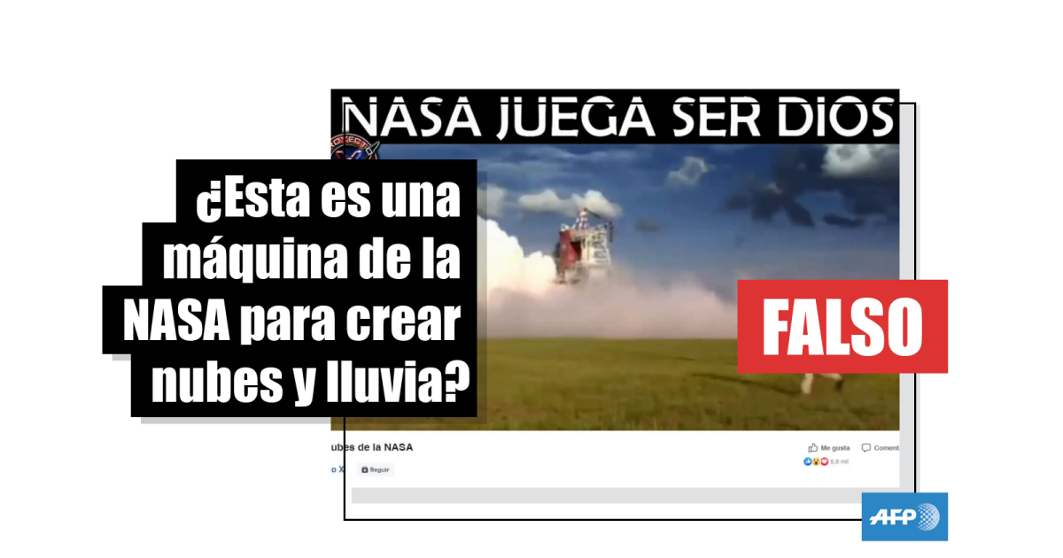 Consultada por el equipo de verificación de la AFP, la jefa de prensa de la NASA, Valerie Buckingham, aseguró que las imágenes virales no muestran una máquina para crear nubes y lluvia.