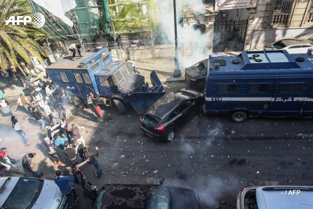 En primer lugar, se oyen frases en árabe y un camión que aparece en las imágenes se parece mucho a los que usa la policía argelina, como el que se muestra en una foto tomada por la AFP el 12 de abril de 2019 en Argel.