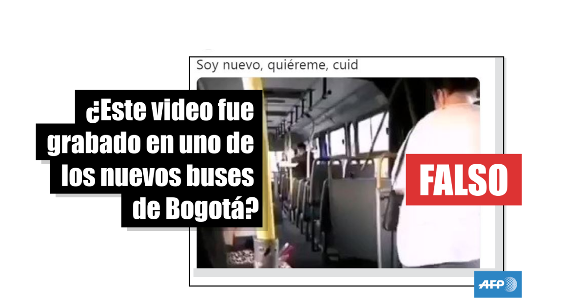 Además, en el video se puede observar que las sillas del bus dañado son grises, mientras que las de Transmilenio, el sistema de transporte de Bogotá, son rojas y tienen otra disposición.