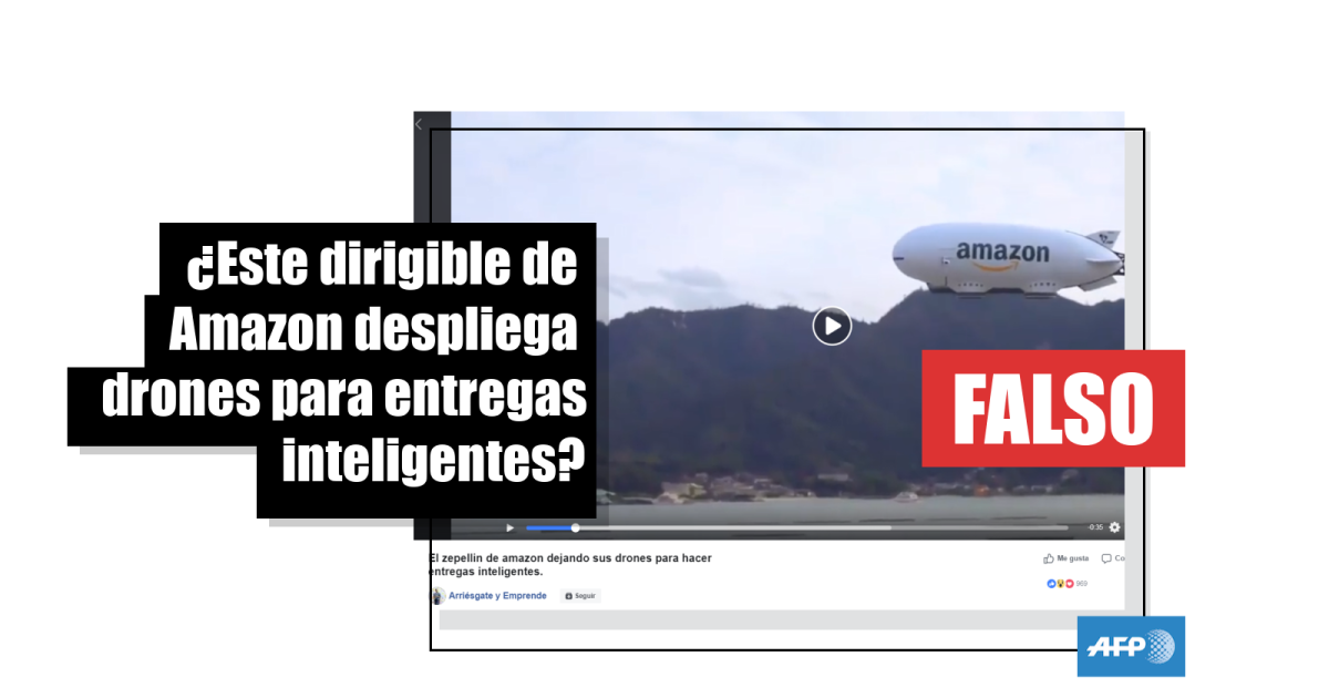 “El zepellin de amazon (sic) dejando sus drones para hacer entregas inteligentes”, se lee en una de las publicaciones, que fue compartida más de 11.000 veces desde el 5 de abril de 2019. Mientras que en los comentarios algunos usuarios ponen en duda su veracidad, otros dan por sentado que la compañía estadounidense cuenta con esta tecnología. Lo mismo sucede en esta otra entrada, en la que algunos usuarios se preguntan por la veracidad de las imágenes, mientras que a otros no parece importarles.