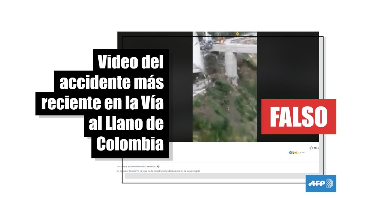 A juzgar por la fecha y el contexto de la publicación, esta se refiere a un accidente que se produjo el 26 de noviembre de 2018 en la misma vía, que conecta a Bogotá con la ciudad de Villavicencio, en el centro del país. Según la AFP, el siniestro dejó cinco trabajadores muertos y uno más herido luego de que colapsara el puente en obra La Pala.