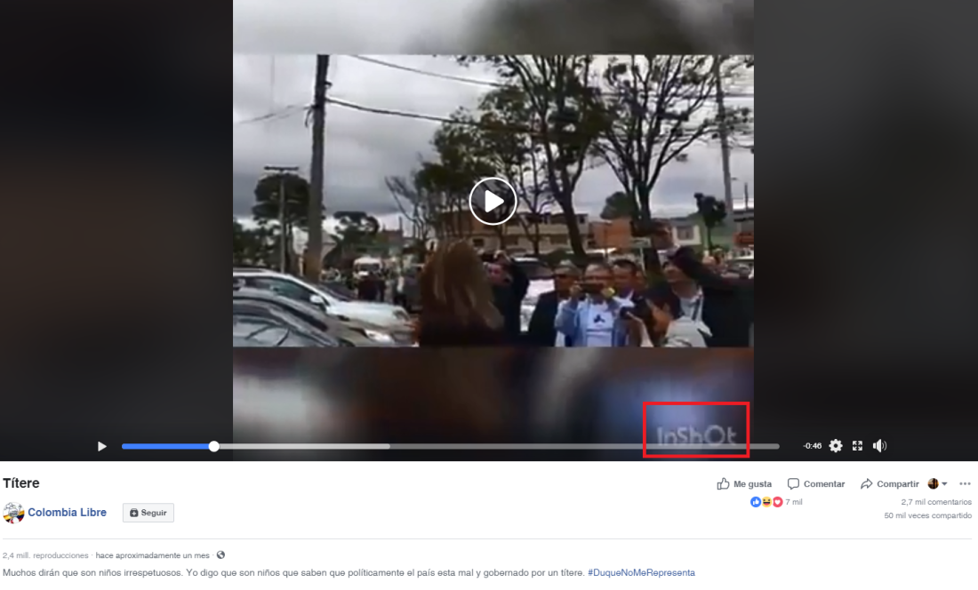 La versión alterada muestra las mismas imágenes, pero en ella el audio original fue reemplazado por el de niños repitiendo la palabra “títere”. De hecho, la grabación tiene la marca de agua de Inshot, una aplicación para editar videos desde dispositivos móviles.