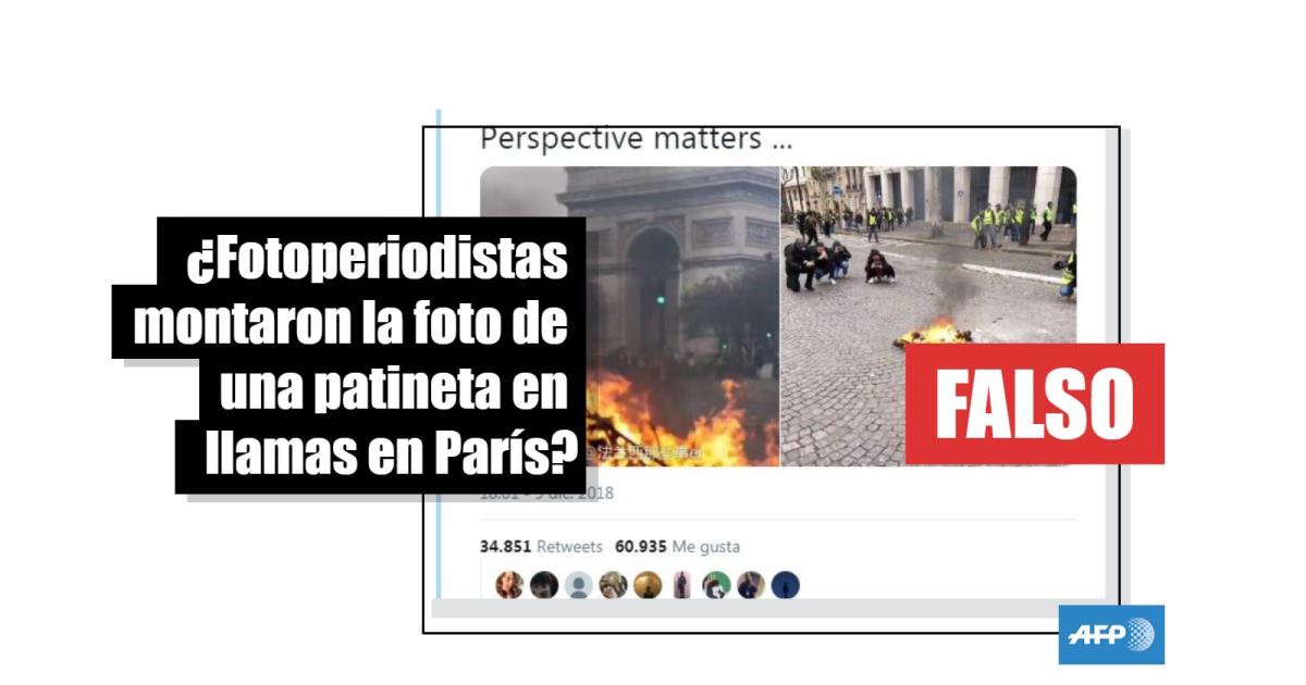 No, fotoperiodistas no montaron la foto de una patineta en llamas en París