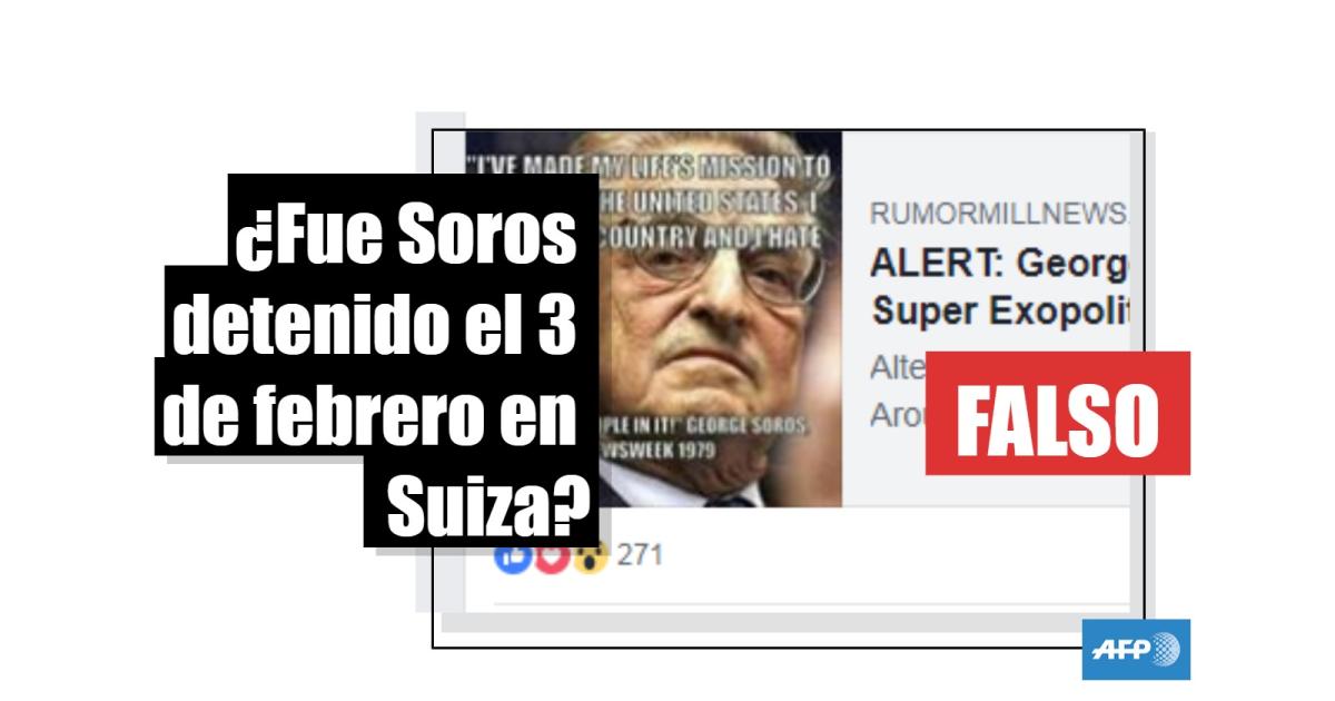 Sin embargo, Soros no fue detenido en febrero de 2019. “No tenemos información de una detención que implique a esta persona (Soros, NDLR) en Suiza el 3 de febrero”, afirmó a la AFP Thomas Dayer, portavoz de la policía federal suiza.