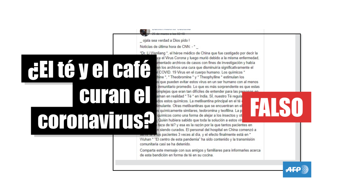 A su vez, exactamente el mismo mensaje fue enviado varias veces al WhatsApp de AFP Factual para ser verificado, aunque en el texto se cambiaba el té por el café. La versión sobre el café también figura en Facebook (1).