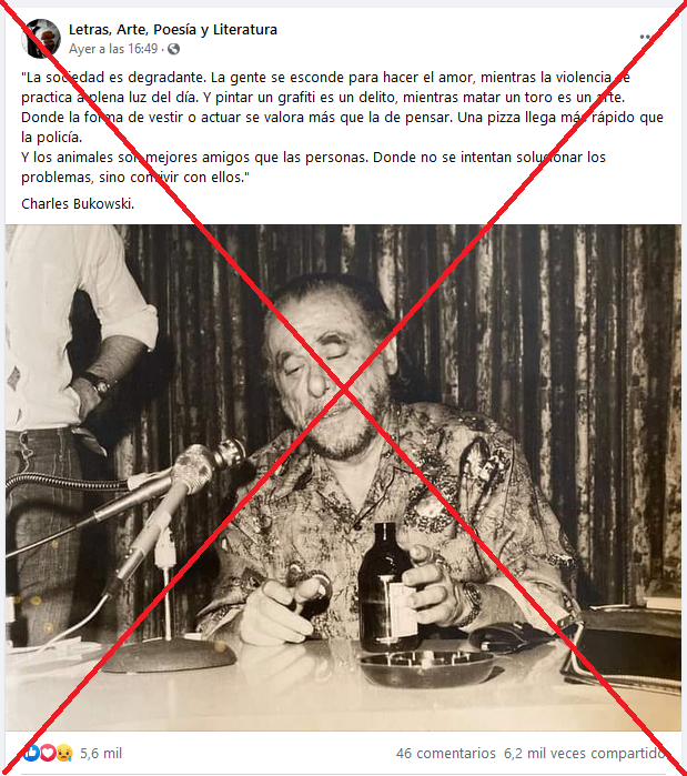 No hay registro de que Bukowski sea autor de un texto viral sobre la degradación de la sociedad