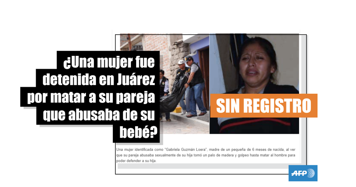 Por lo tanto, no hay registros del supuesto caso de la mujer que mató a su pareja por defender a su bebé de seis meses en Ciudad Juárez. Las autoridades del estado de Chihuahua no tienen conocimiento del mismo y una de las fotos usadas para ilustrar la publicación viral corresponde a Perú.