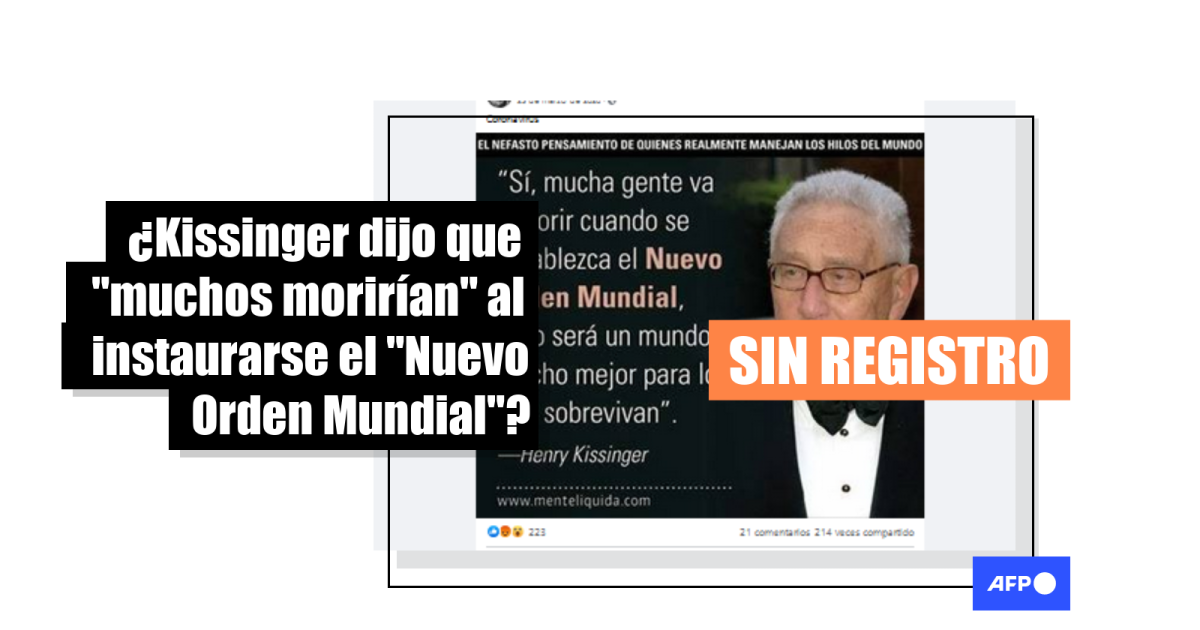 No hay registro de que Kissinger haya dicho que muchos morirían por el "Nuevo Orden Mundial"