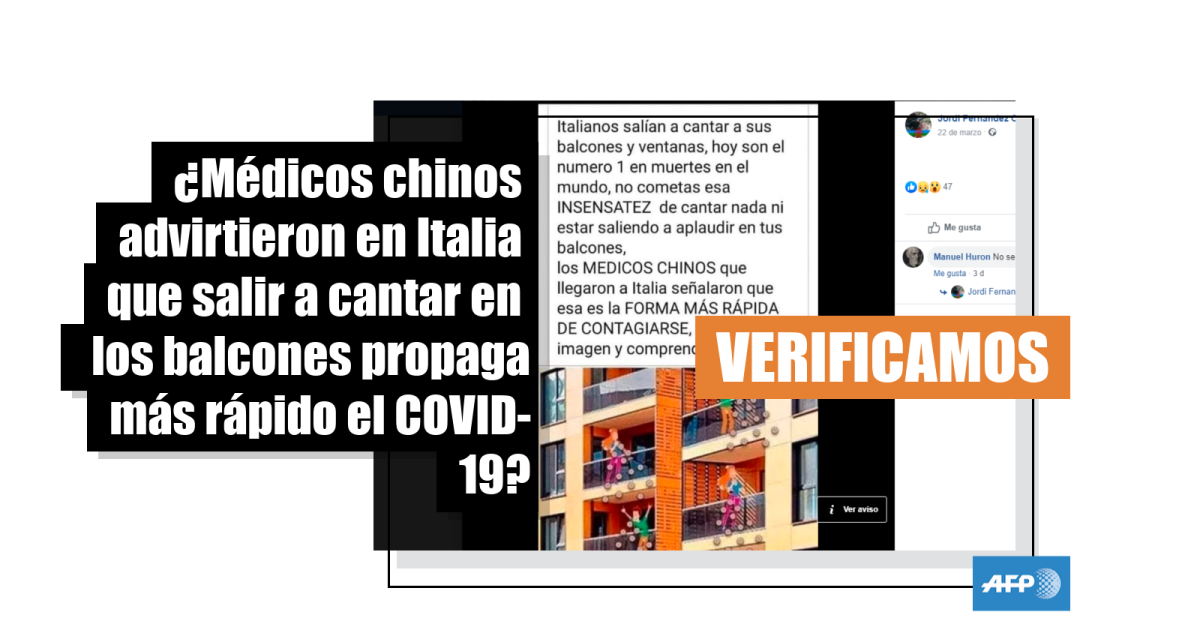 No hay registro de que médicos chinos recomendaran en Italia no salir a cantar en los balcones por el nuevo coronavirus