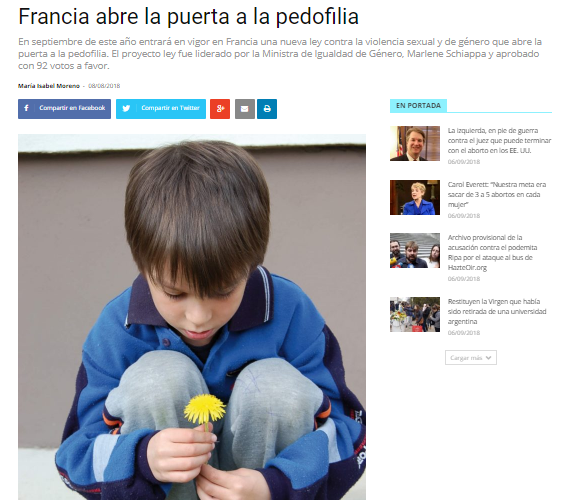 “Francia abre la puerta a la pedofilia” es el titular de un artículo compartido más de 14.000 veces en Facebook. Según este, una "la ley recién aprobada confirma que la penetración de un niño por un adulto puede no ser una violación, por lo tanto no sería un crimen y no estaría penalizada."