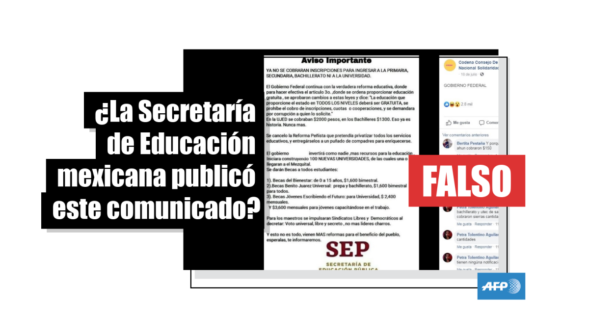 La AFP se puso en contacto con personal de la dirección de Comunicación Social de la SEP, que respondió en un mensaje de texto sobre el boletín que circula: “Este aviso es totalmente falso. La SEP no ha emitido ningún tipo de aviso similar”.